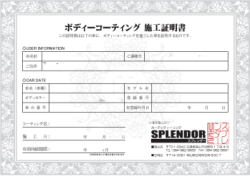 当店ではコーティング施工後に「施工証明書」を発行しております。